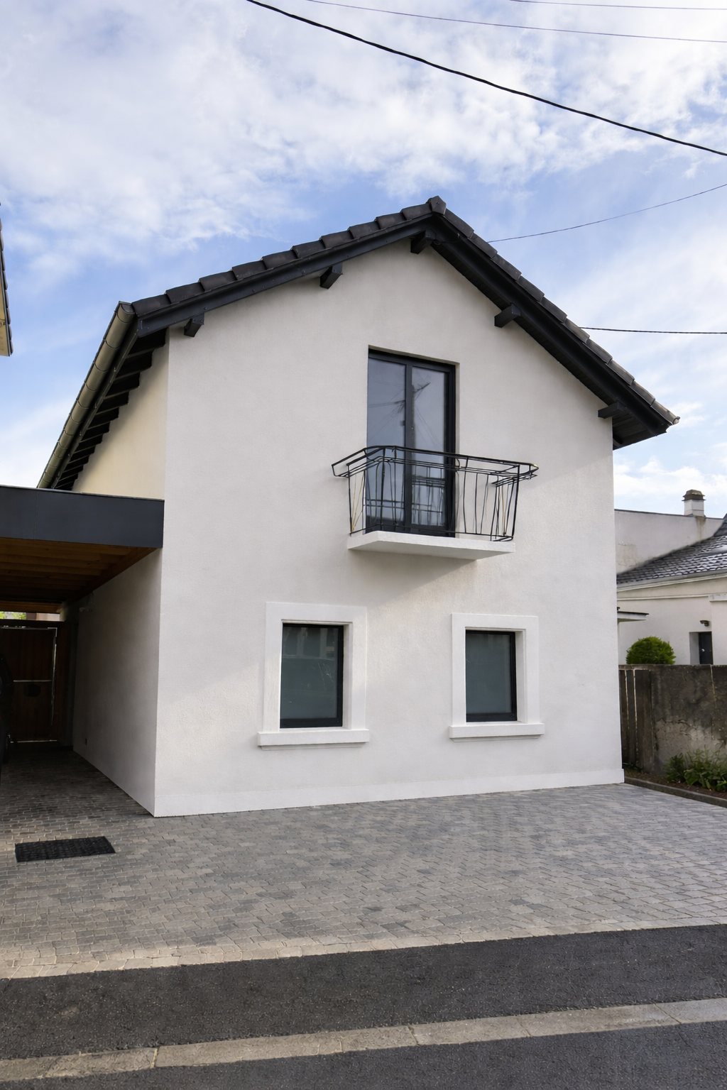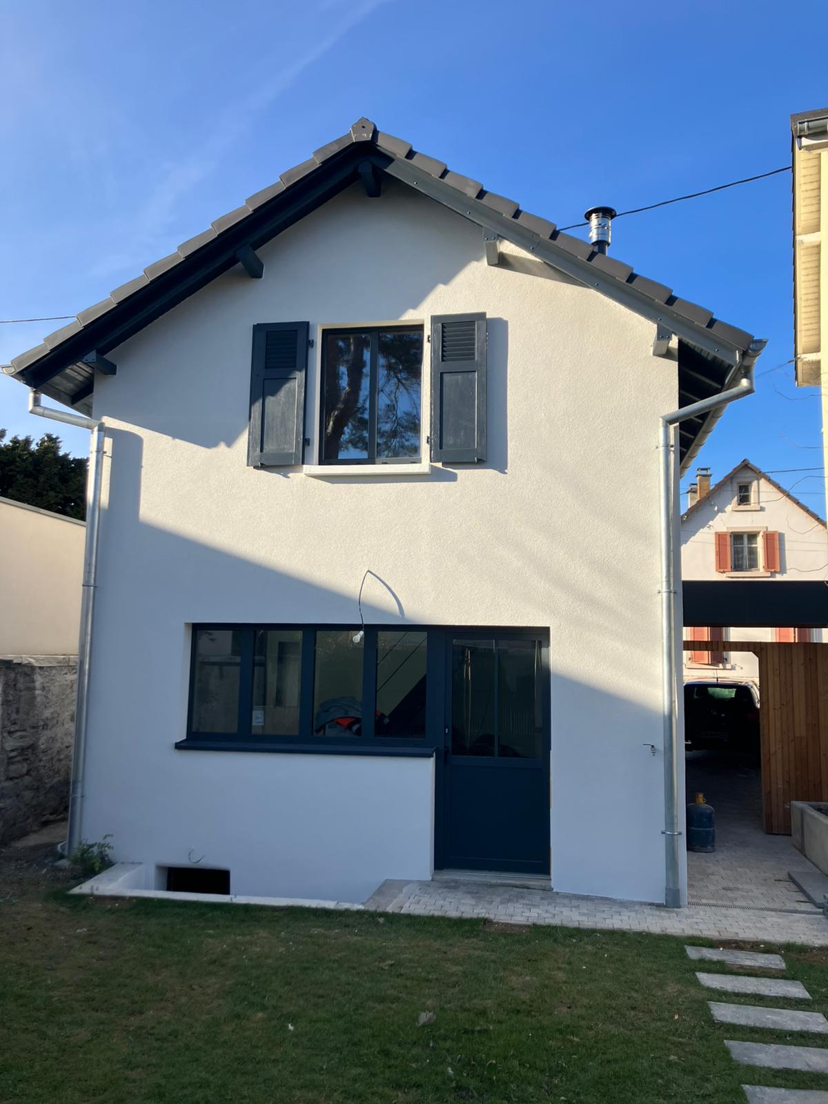 Le résultat final offre une façade harmonieuse, épurée et parfaitement intégrée dans son environnement résidentiel à Huningue.